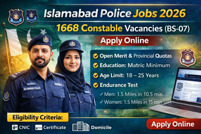 Islamabad Police Jobs 2026 – 1668 Constable (BS-07) Vacancies Announced The Islamabad Capital Territory (ICT) Police … Islamabad Police Jobs 2026 – 1668 Constable (BS-07)Read more