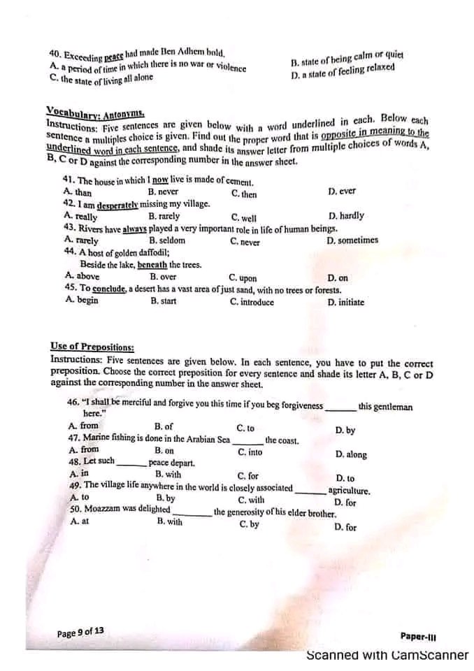 English MCQs From JST Past Papers