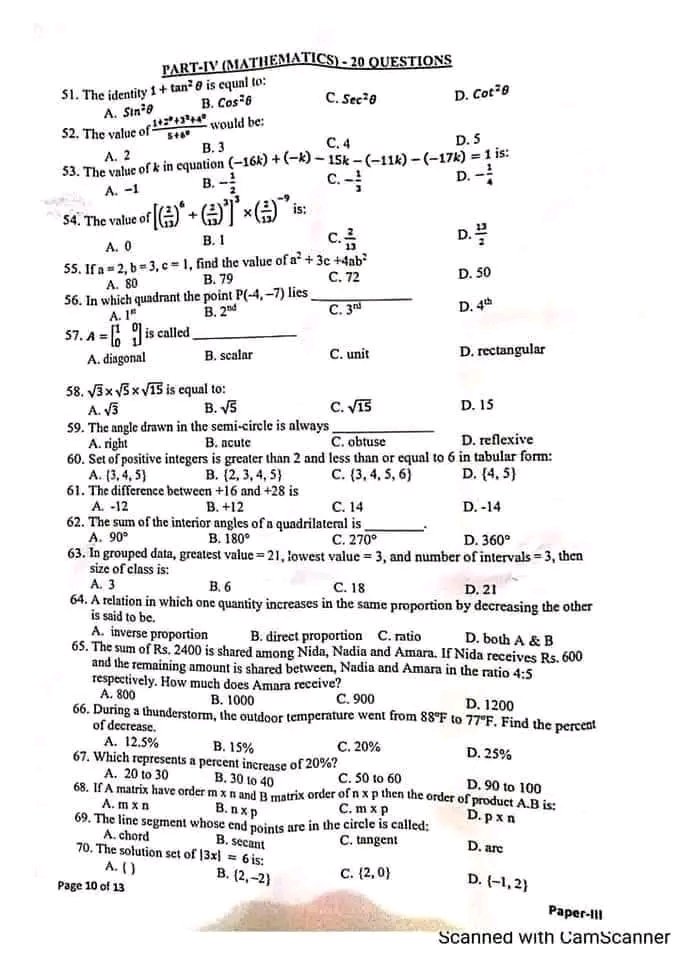 Mathematics MCQs From JST Past Papers