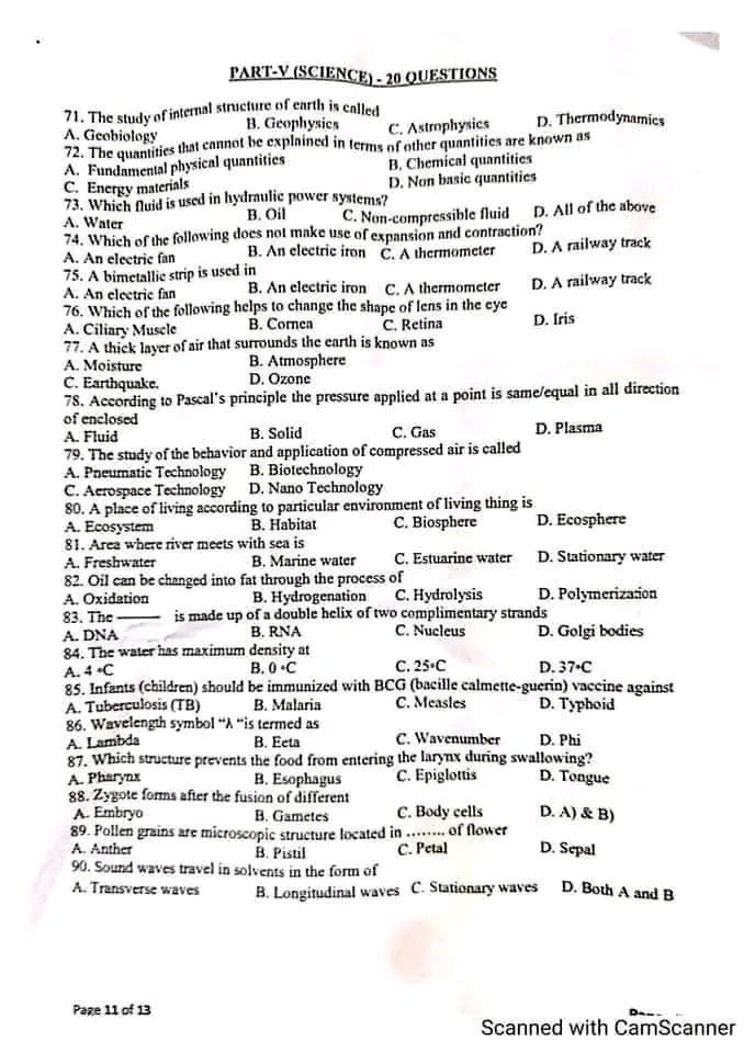 Important Science MCQs From JST Past Papers
