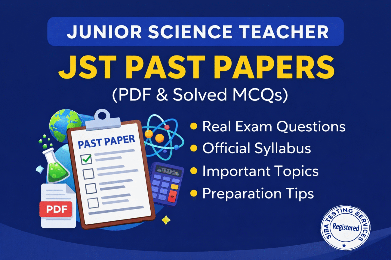 Candidates preparing for the Junior Science Teacher (JST) recruitment test should study previous exam papers to understand the exam pattern and important topics. Practicing past papers is one of the most effective ways to prepare for the test conducted through SIBA Testing Services for the School Education & Literacy Department Sindh.