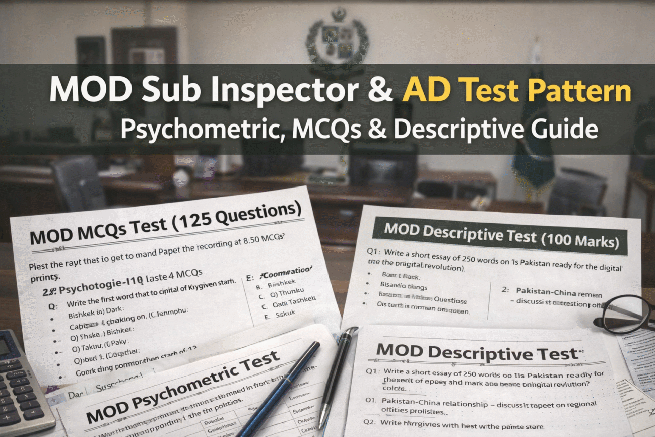 If you have applied for Ministry of Defence (MOD) jobs like Sub Inspector or Assistant Director and are searching for the real paper pattern, psychometric test details, and past paper format — this guide is based on actual test experience.