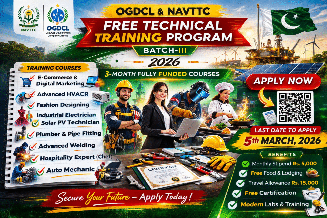 If you are between 18 to 30 years old and looking for free skill-based training in Pakistan, this opportunity from OGDCL and NAVTTC could change your career direction.