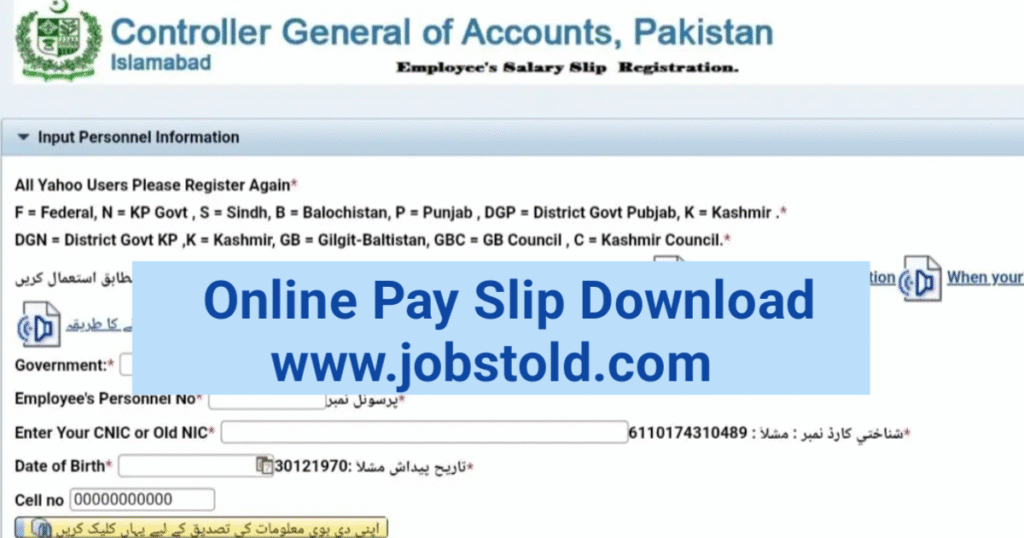Salary slips will be provided to all government employees who are getting salary from Finance department of Pakistan.