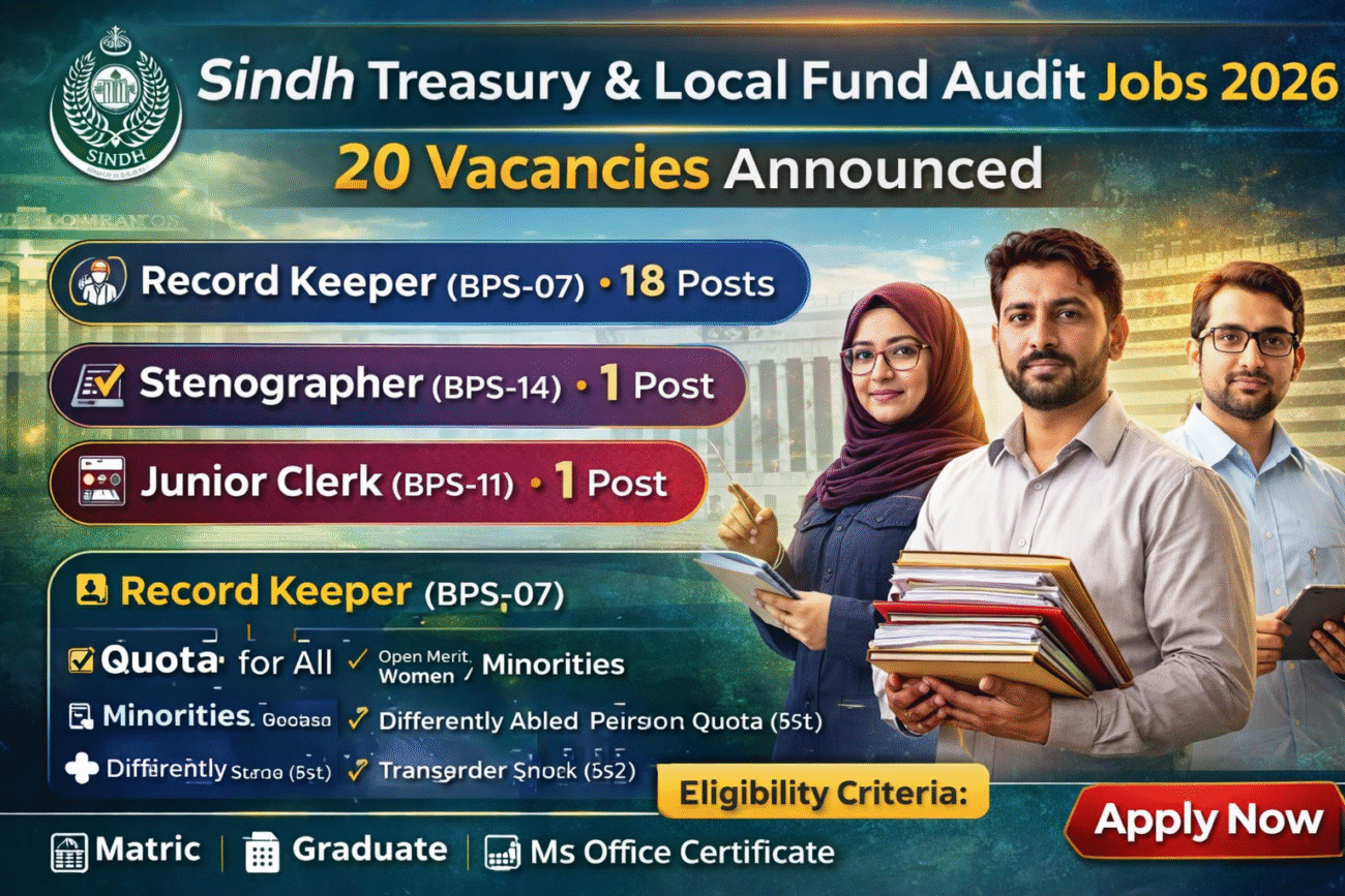 Sindh Treasury & Local Fund Audit Jobs 2026 – Record Keeper, Stenographer & Junior Clerk (20 Vacancies)