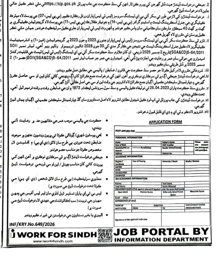 - Applications must be submitted online through Sindh Job Portal: https://sjp.gos.pk